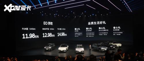 北京现代首款纯电平台SUV——EO弈欧于今日正式上市,新车推出3款车型及7种配色。FUN版540km 11.98万元,SMART版540km 12.98万元,TECH版540km 14.98万元。
