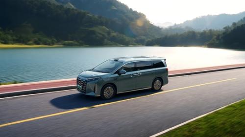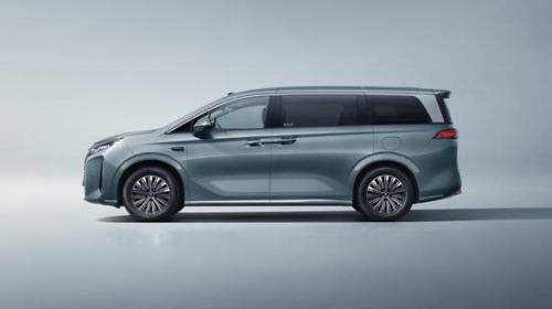 车身侧面线条立体流畅,采用传统机械门把手与电动侧滑门,支持投影感应开启,并提供手机蓝牙钥匙和NFC钥匙。车身尺寸方面,其长宽高分别为5145mm*1970mm*1805mm,轴距达3045mm。