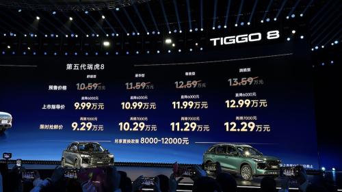 11月10日,奇瑞汽车宣布第五代瑞虎8正式上市。新车推出两种动力配置共四款车型,官方指导价为9.99万至12.99万元,同时公布了限时抢鲜价政策,实际支付价格为9.29万至12.29万元。此次改款主要针对外观细节、内饰质感及智能配置进行了调整升级。