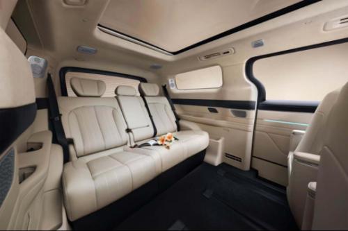 内部座舱呈现出了旗舰级的奢适格局,舱内色彩温暖柔和,营造出自然舒适的氛围。超大面积全景天幕延伸至第三排上方,使得整车视野更加开阔通透。二排座椅宽大舒适,尽显尊贵感;三排同样空间充裕,打破了传统MPV三排局促的刻板印象,也意味着用户将享受到与以往截然不同的豪华出行体验。二排小桌板进一步拓展了使用场景,移动办公、会客等皆可轻松实现。细节处的储物空间设计,也体现出银河V900无微不至的贴心考量。
