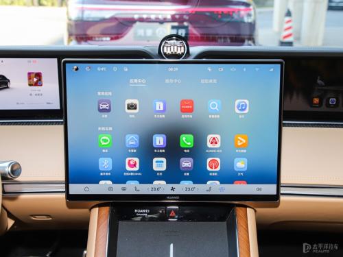 2.内饰座舱:采用由12.3英寸全液晶仪表、16.1英寸3K中控屏和12.3英寸副驾娱乐屏组成的三联屏布局,搭载华为最新鸿蒙座舱;