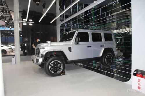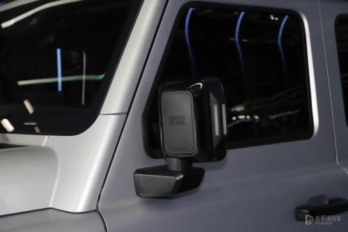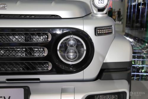 车身侧面配备高位涉水喉、金属侧踏板与外挂式备胎,越野气息十足。尾部设计简洁硬朗,竖向排列的尾灯组与后保险杠造型与燃油版保持一致。