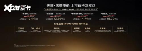 为诚挚回馈首批用户,天籁·鸿蒙座舱特别推出超级置换金1万元,上市限时诚意价12.99-15.79万元,全系标配鸿蒙座舱5及HUAWEI SOUND,让智能舒适的用车体验更加触手可及。