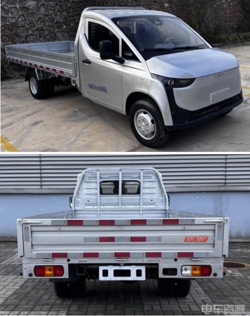 根据底盘申报信息来看,新车为一款后电驱桥+一体化电池包+双后胎车型,后悬架为3+2片板簧悬架,轮胎规格为185R15LT 6PR,总质量3495kg,额定载重为1345kg。另外,新车还可选装备胎。底盘参数同样是主流的纯电小卡标准。