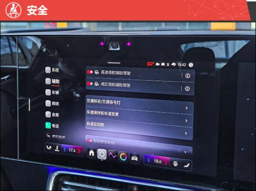 评测车搭载与Momenta合作的辅助驾驶方案,支持城市与高速领航辅助功能。只需按下方向盘左侧的按键即可开启,此时系统会有图标、文字和声音进行提示。跟车距离支持四档调节,当调整到最近档位时与前车间距合理,不容易被其他社会车辆加塞。