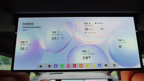 前排是一块17.2英寸的中控屏,后排则配备了一块8英寸的娱乐屏,均获得了德国莱茵低蓝光护眼认证。