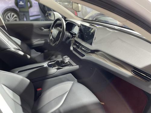 红旗E-QM5的内饰风格较为简洁,以黑色为主色调,采用了大尺寸的悬浮式中控屏,空调出风口下方还设计有较大的储物格。大面积的皮质包裹很有质感,视觉效果出色。