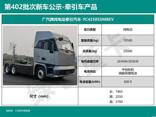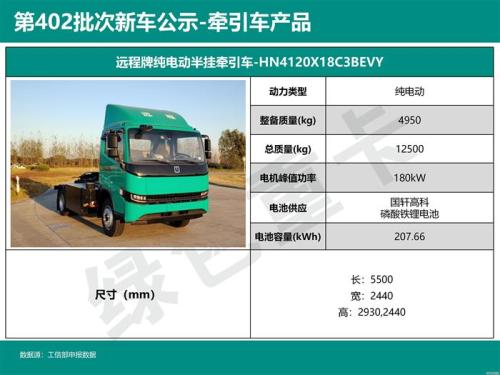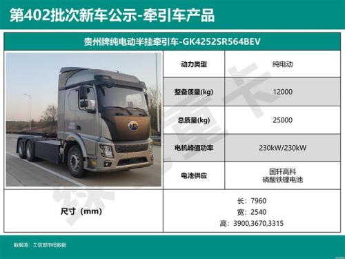 贵州重卡共申报2款牵引车,均为充电车型: