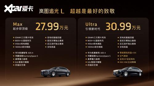 12月10日,岚图汽车以"破晓"之势推出定位"新时代旗舰轿车"追光L,新车指导价为27.99万-30.99万元,推出2个配置版型,并公布了总价值5.2万元的终身三电质保、5年免费基础保养等首任车主6大无忧服务权益,以及超高价值的3年0息金融权益。岚图追光L的正式上市,补齐了岚图汽车三旗舰矩阵的最后一块拼图,与岚图泰山和岚图梦想家一同冲击高端豪华车市场,同时也试图用全维度旗舰配置在30万级豪华轿车竞争格局中添上浓墨重彩的一笔。