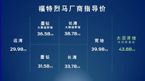 综合来看,国产福特烈马是野性与智慧的结合,也是顺应当前智能化大潮,满足中国消费者需求的一款价值十足的产品。值得一提的是,国产福特烈马不但在产品上有很多配置升级的亮点,也提供给中国用户非常有诚意的价格,这说明福特烈马更愿意从消费者角度出发,不断传递“越野之魂”,让更多人享受到越野的乐趣。可以说,国产福特烈马绝对是国内越野车迷最值得等待的好车。
