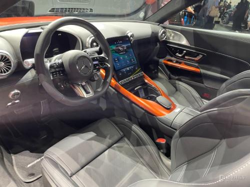 内饰部分,新车内饰造型采用了和AMG SL相同的家族化设计,中控台造型具有比较强烈的力量感,同样,家族式的三辐式方向盘也没有缺席,底部的两个旋钮可以分别调节驾驶模式、底盘等功能。