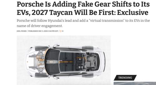最近有条新闻挺逗:保时捷打算在纯电车上搞个“虚拟变速箱”,新款Taycan可能率先搭载。