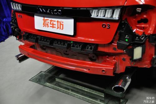 领克03后部防护结构包括保险杠外壳,防撞梁和吸能盒等。