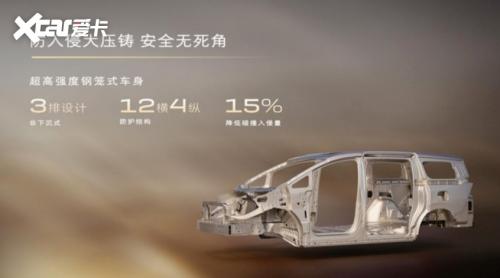 新车按GM北美最高五星防翻滚标准打造,以12横4纵潜艇级超高强度钢笼式车身,配合防入侵大压铸技术,实现碰撞乘员舱侵入量降低15%,更在业内最严苛的托底后追尾叠加跌落极限试验中斩获全优成绩,真正实现三排安全平权。