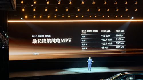 其中,纯电版车型电池容量提升至115度,CLTC续航达到800km。