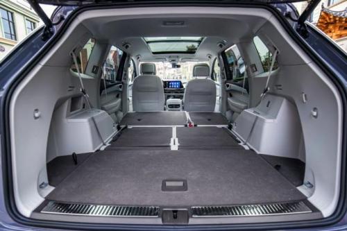 得益于接近3米的轴距,揽境全系提供6座/7座两种座椅布局。其中7座版本作为选装,更侧重于家用属性,第二和第三排座椅可根据需要完全放倒,从而获得进深超过2米的“纯平”空间,并扩展出2451L超大后备箱容积。