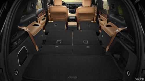 新一代大切诺基L内饰的变化是非常彻底的,中控台采用对称式设计,并配备有10.3英寸全液晶仪表盘,中央控制屏幕标配8.4英寸,并提供10.1英寸可选,并内嵌UConnect 5娱乐信息系统,支持苹果无线CarPlay和Android Auto以及4G LTE Wi-Fi热点。同时新一代车型的亮点在于提供三排座椅设计,标配为2+2+2式六座布局,其中第二排座椅还配备有扶手,提供更强的舒适型。当然在配置方面,全车还提供12个USB和USB-Type C接口,19扬声器音响、自适应巡航、夜视系统、以及L2级别的自动驾驶辅助系统等。