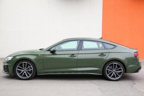 车侧是A5 Sportback最独特的地方,从A柱一直延伸到车尾的大溜背设计不仅造型更像跑车而且还能让车身在拥有一个好的空气动力学系数的同时得到一个优于三厢车的超大后备箱开口以及更大的储物空间。打开车门,你还会发现它具有基本上只出现在跑车上的无边框式车门,当你在开门上下车时,它能够时刻提醒你和周围的人这不是一辆不同的轿车。跑车都会有些靓丽的颜色,新A5也不例外,在新款上它将增加流光蓝和耀夜绿两款绚丽的颜色,其中耀夜绿在阳光下的某一角度还能呈现出金色的亮光。