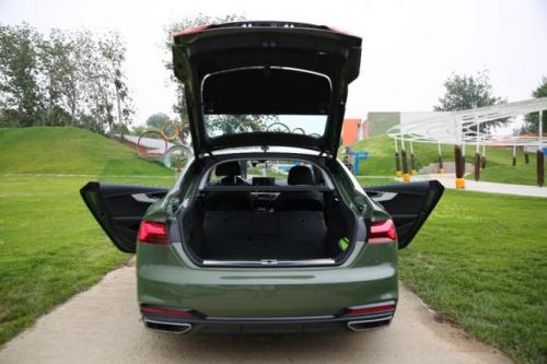 在乘坐体验上,和跑车一样A5 Sportback的坐姿较低矮,它的前排座椅不管是在对乘员两侧的包裹性还是坐垫的软硬程度上都恰到好处。经过实测,身为173的乘客在保证前排空间的同时,后排腿部还有两拳的距离,再加上特殊设计的车顶让它的后排和头部空间并没有想象的那么局促。在这方面它的确做到了跑车与实用性之间的平衡。