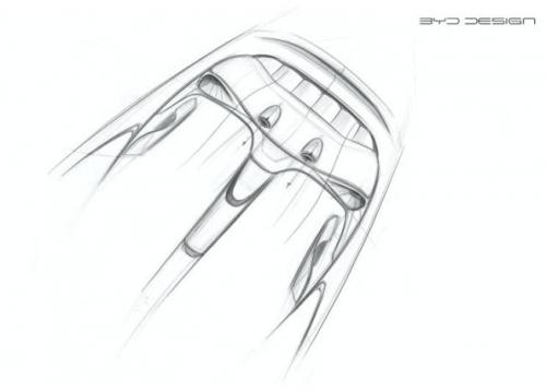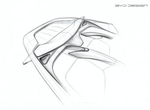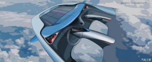 通过俯视图可以看出,在仪表台前部还有波浪造型的特殊设计。此外,两侧空调出风口的设计也非常有特色,其造型如同海面的漩涡,营造出未来感。