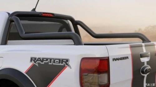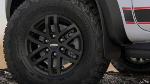 侧面来看,Ranger猛禽X采用了更加独特的车身拉花设计,使得其更加符合澳洲福特的特点,当然重点的升级还是在一套17英寸轮圈匹配33英寸的AT轮胎,货厢还将标配龙门架来进行加强。尾部的Raptor标识,则表示了新车的强悍属性。