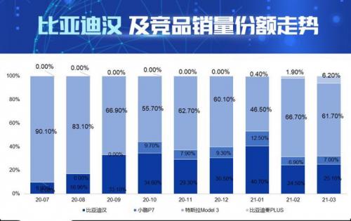 根据汽车之家大数据,汉的主要竞争对手包括小鹏汽车P7、Model 3、秦PLUS,接下来,将会从市场销量、竞品格局、用户分布、车主评价四个维度为大家进行产品竞争力的全面解析。