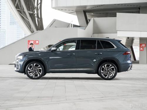 从车身正侧面来看,新车整体轮廓十分硬朗大气,笔直的腰线从前大灯贯穿至尾灯处,瞬间提升整个侧面的立体感。车身尺寸上,新车的长宽高分别为4770/1895/1689mm,轴距2845mm,与之匹配的轮胎规格为235/55 R18、235/50 R19、245/45 R20。