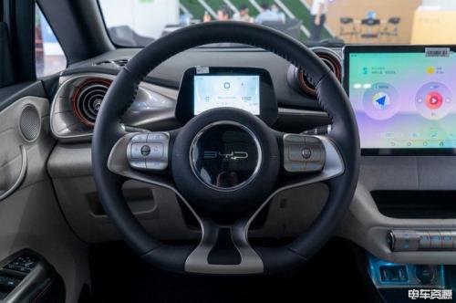 海豚的内饰也是全新的设计,虽然整体来说仍然是对称式+悬浮中控大屏的布局,但圆形的空调出风口、多种材质/配色组成的中控台还是能够让人眼前一亮。