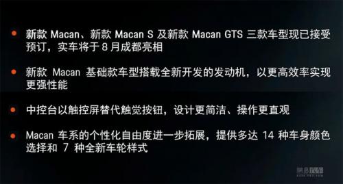 日前,根据保时捷汽车官方信息:保时捷新款Macan正式于线上全球首发,并公布中国市场价格;新车推出3个动力级别:新款Macan(195kW,6.2秒破百)售价55.4万元、新款MacanS(280kW,4.6秒破百)售价68.8万元、新款Macan GTS(324kW,4.3秒破百)售价84.8万元。新车将亮相8月底开幕的成都车展(延期至8月29日-9月7日举行)。