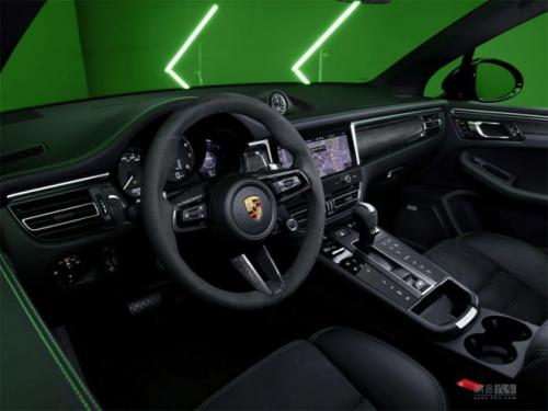 除了动态优势和外观上特殊的黑色点缀,专为旗舰Macan GTS提供的GTS运动组件还包含专属的内饰配置,包括18向运动座椅、碳纤维内饰包、带有丰富皮革元素的Race-Tex内饰、带有对比色缝线的各种物品,以及巨蟒绿的GTS字样。