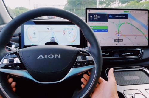 试驾体验中,在高精度地图定位模块和全车摄像头、雷达等多个传感器下,NDA智能领航辅助系统就能让AION V Plus实现自主超车、自动变道、进出匝道等操作,为驾驶员提供更加舒适便捷的驾驶体验。