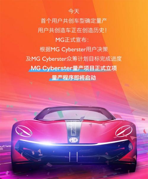 近日,上汽名爵通过官方微信公众号对外发布了一条消息,旗下首个用户共创车型MG Cyberster确定量产,且未来量产版车型将高度还原概念车,并将在产品上留下用户印记。新车早前通过众筹方式来决定是否量产,而在众筹开始后,新车在短短10天就突破了认筹的5000辆。