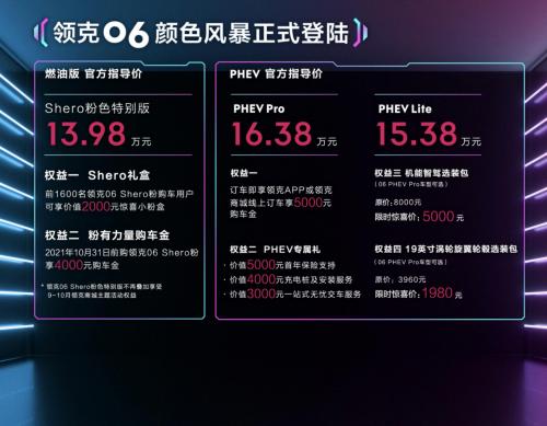 (领克06 Shero粉色特别版、领克06 PHEV Pro、领克06 PHEV Lite价格权益公布)