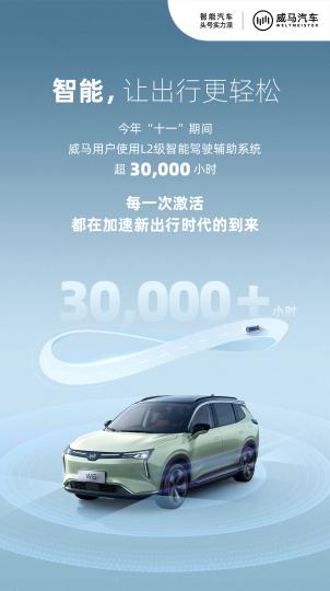 “十一”期间,威马用户使用L2级智能驾驶辅助系统超3万小时