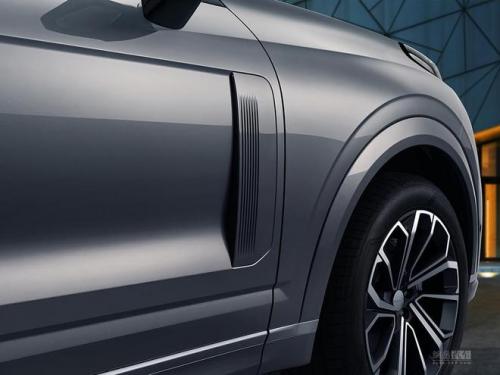 车身侧面线条依旧非常流畅,没有了生硬的线条让领克09更加契合城市属性。在翼子板后方设计了一快撞色饰板看起来很高级。D柱子采用了隐藏式设计,隐藏式门把手不仅可以减小风阻,同时让整车在科技感受也有所提升。三维尺寸方面,整车长5042mm、宽1977mm、高1780mm,轴距2984mm,对于一款超过5米的SUV来说,视觉感受上是真的霸气。