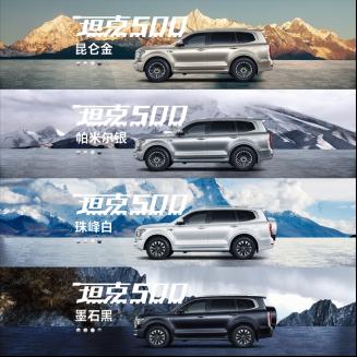 本次坦克500推出昆仑金、帕米尔银、珠峰白、墨石黑四款外观颜色,以及双棕、蓝米、黑色三种内饰配色;定位中大型豪华越野SUV,坦克500以兼容品质越野和商务豪华的强大产品实力,迅速引燃本届广州车展的观展热情,火爆势头持续霸屏各大平台。