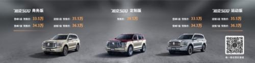 11月19日,坦克500在广州车展正式开启全国预售,共推出商务版、运动版及定制版三个版本,同时提供5座、7座车型可选,预售价格为33.5万元-39.5万元。同时,与用户共创的坦克500黑武士版本同步开启预售,预售期限量发售500台,预售价格为36.5万元。针对预售订购用户,坦克品牌还推出了惊喜4重礼,以及6项限量福利政策。