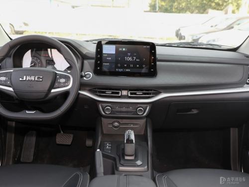 外观方面,新款域虎7的前脸相比老款变化显著,前脸点缀大面积镀铬装饰,粗壮的线条散发出浓郁的力量感,饰条最上方的“JMC”品牌标识更加醒目,看上去更有品质感和辨识度。后斗部分,配备了货厢宝,防滚架等,后斗最高载重量达到了850公斤。可以说,车辆兼顾了美观和实用。