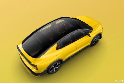 车身侧面,从车顶到车尾的溜背造型明显,营造出了跨界风格。三段式运动腰线、形似刀刃的C柱设计以及黄黑相间配色的侧裙,也是非常强调运动化的元素。大尺寸的轮圈使用了多辐式设计,半封闭的样式也降低了行驶时的风阻。车顶还配备有一块面积达2.1O的穹顶式全景玻璃天幕,为车内带来了不错的视野。