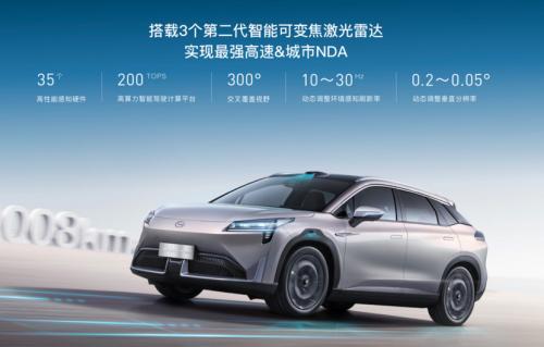 在智能电动车最大的看点辅助驾驶方面,AIONLXPlus配备了35个智能驾驶硬件,包括3颗第二代智能可变焦激光雷达,6个毫米波雷达、12个超声波雷达、8个自动驾驶高清摄像头、4个环视摄像头以及2个独立高精定位模块。