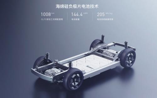 能够突破1000km的续航大关,要归功于广汽埃安自主研发的海绵硅负极片电池技术。广汽用时五年来攻克技术难关,实现了硅负极材料在大型动力电池上的应用,自主研发了“海绵硅负极片电池技术”,让电能储存更多的能量。