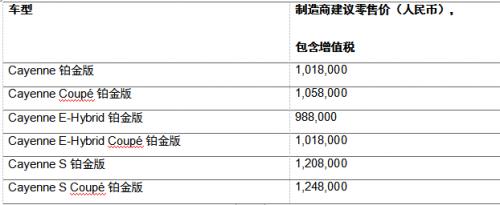 保时捷旗下大型运动SUV车型Cayenne特别推出一个铂金版系列,六款新车现正式启动中国市场预售,并将于6月的深圳车展中国首秀。新车基于三个动力版本打造:Cayenne(250 kW / 340 PS)、CayenneE-Hybrid(284 kW/ 386 PS)和CayenneS(324 kW / 440 PS),并涵盖SUV和Coupé两种车身形态。