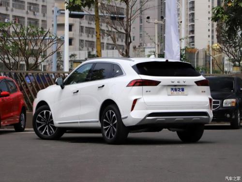 车尾部分,新车新车尾灯采用了熏黑式设计,后包围两侧反光板造型性也与前包围相互呼应,下方还配有银色的后护板,以及隐藏式的排气布局,看上去非常厚实,整体设计还是能看出WEY家族车型的影子。