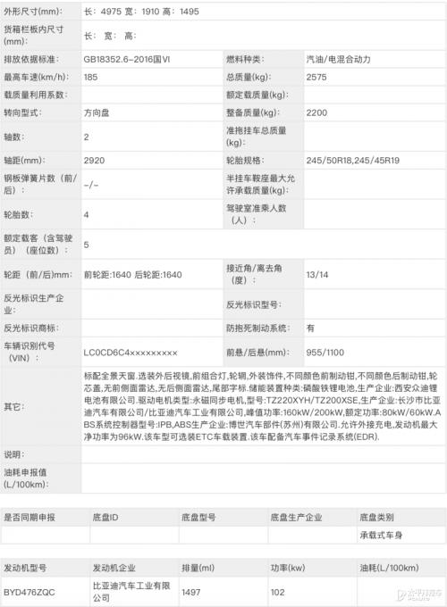 车身尺寸上,新款比亚迪汉的长宽高分别为4960/1910/1495mm,轴距达到了2920mm,定位中大型插电混动轿车。从申报信息中我们还可以看到,新车将会配备特殊颜色的制动卡钳。