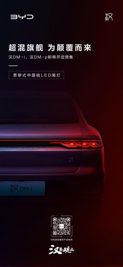 日前,比亚迪官方微信公众号显示新款汉DM(参数|图片)-i和汉DM-p两款车型将于近期开启预售,并公布车尾预告图。除此之外,我们在一份经销商内部资料中看到汉DM-i和汉DM-p车型暂定2月下旬预售、4月初上市,预计价格区间为22-30万元;而汉EV GT版暂定3月上旬预售、4月初上市,预计价格区间为28-35万元。
