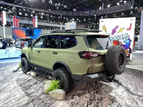 新车加入275/70R/17大尺寸越野轮胎和8段可调氮气减震,8段可调氮气减震则可承受长时间连续性工作,无惧颠簸路况,整体提高了越野路段的同行能力和舒适性,抬高金属越野前保险杠和底盘,使得接近角在原厂基础上增加15度,离去角增加10度,提高涉水深度,配合涉水喉的超强涉水能力。