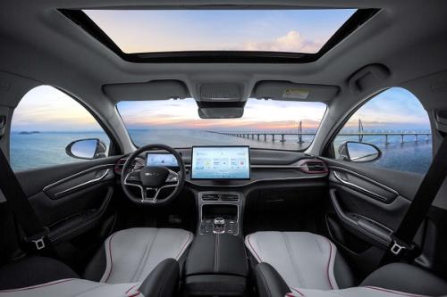 在内饰设计上,驱逐舰05运用极简线条由中控面板自然延伸到两侧,营造出极具层次的内饰空间搭配,“两大一小”创新组合即12.8英寸自适应旋转悬浮Pad(高配15.6英寸)和8.8英寸全液晶仪表盘及一个操作台小巧的旋钮式换挡按钮,营造出更多科技气息。