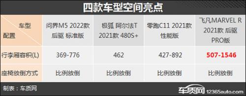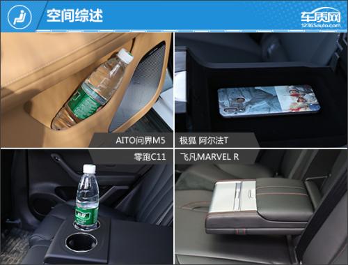 空间小结:总的来看,四款车型都有着不错的表现,MARVEL R的表现最为出色,后备厢容积在同级别车型中优势明显。其余三款车的储物空间使用起来都比较顺手,而问界M5除了后备厢空间略小以及仅有一个前排杯架外,也并未发现太多槽点。