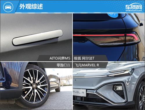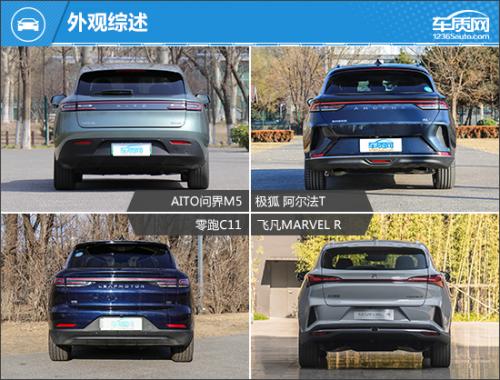 总结:综合比较而言,四款车在外部设计层面都很有特色,从个性化程度来看,MARVEL R造型更加科幻,符合新能源车型应有的未来感;极狐阿尔法T以及零跑C11也有着较高的识别度,而对于问界M5来说整体设计风格更加贴近燃油车。内部配置和设计层面,四款车可完全满足我们日常使用需求,同时极狐阿尔法T以及零跑C11车内多块大屏令自身充满科技感。动力上,四款车续航里程都具备主流水平,进一步打消了消费者的里程焦虑。总的来说,面向高端市场的四款新能源中型SUV都具备了强劲的产品实力,至于该选择哪一款,就看您个人喜好了。