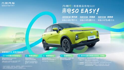 汽车信息网5月27日讯随着油价的高企以及新能源渗透率的不断提高,越来越多的消费者愿意选择一台使用成本不高、售价亲民的入门新能源车型作为代步车,这其中比亚迪元、哪吒V等小型纯电SUV就凭借着不错的性价比与亲民的售价取得了市场的认可,吉利汽车旗下主打性价比的几何品牌自然是不能放过这个销量增长点,也带来了自己的小型纯电SUV—几何E。 5月26日,几何汽车宣布几何E正式开启预售,此次共推出综合工况320km乖巧虎、401km玲珑虎和401km霹雳虎三款车型,预售价格分别为8.78万元、9.88万元、10.48万元。